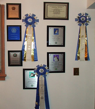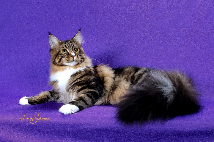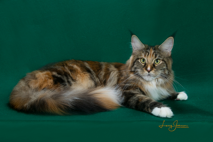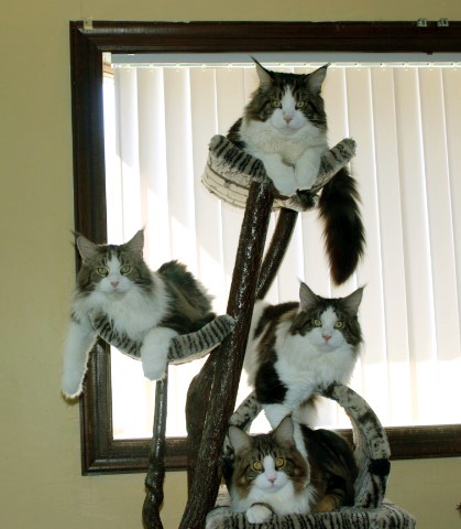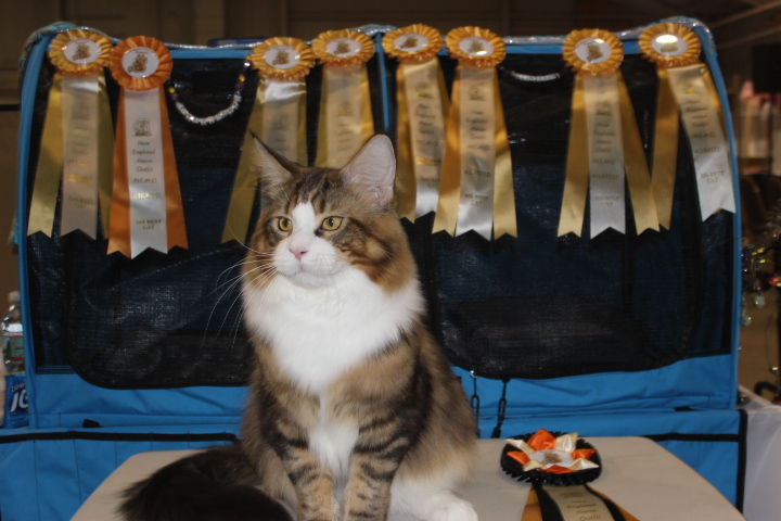 All of my cats meet the breed standard. I keep up with all of the new health advancements made for our breed fo insure my cats well being. In addition to this I have devoted much time and effort in showing our cats. In this venue we have been rewarded by their many accomplishments in the show ring. We have consistently produced many Grand Champions, Regional Winners & a National Winner. I have received a Distinguished Merit Award & my cattery is a CFA Cattery of Distinction with many National Awards from the Maine Coon Breed Council. My focus has been in CFA although my cats have done well in TICA as well. My cats' pedigrees contain National Winners in CFA as well as International & Regional winning cats in TICA.