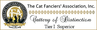 CH DM ClassicCool Sedona achieved a Distinguished Merit Award for our cattery. We are very proud of Sedona as she had to produce five CFA Grand Champions to receive this award. This is not an easy task.