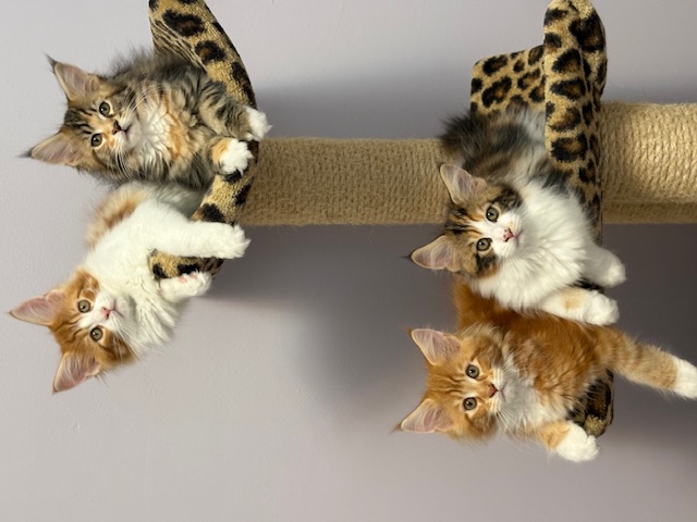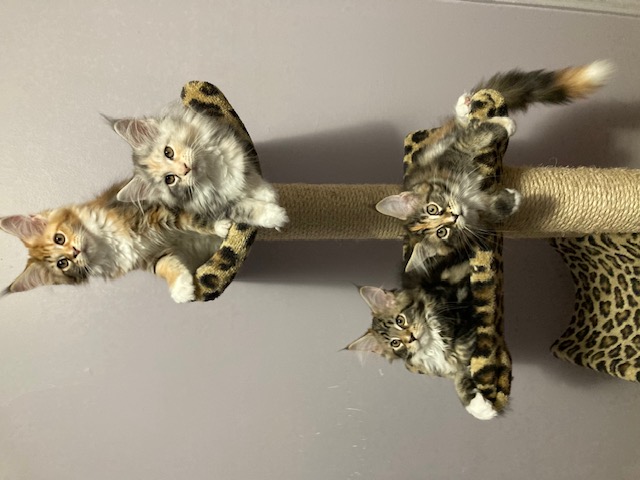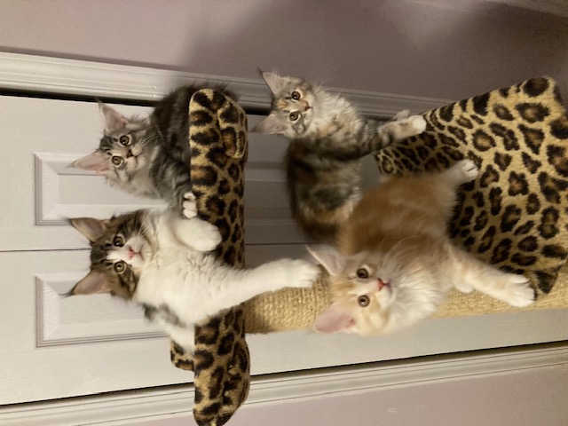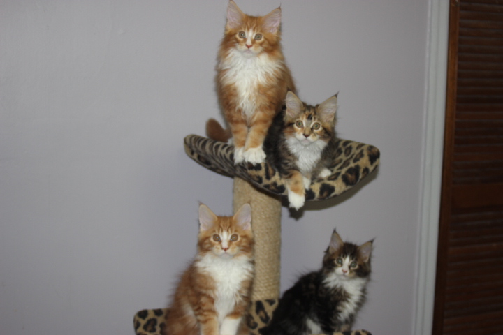 Kittens are only held with a deposit in advance after we have approved you through an interview. Prospective parents are thoroughly screened and a vet reference is obtained prior to issuing contracts. Pictures are emailed to all with holding deposits that are waiting to meet their new family member. The kittens are raised in the bedroom until receiving their first vaccinations which are given at nine weeks of age. Second vaccinations given at twelve weeks. We do not let them leave for their new homes until they are 12 weeks of age.