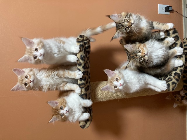 All of our kittens are properly vaccinated and come with a health guarantee. Our cats are all negative for FELV,FIV,PK,SMA and are Ringworm free. Our breeding cats are DNA tested for hypertrophic cardiomyopathy (HCM) through North Carolina State University Cardiac Genetics & UC Davis.
